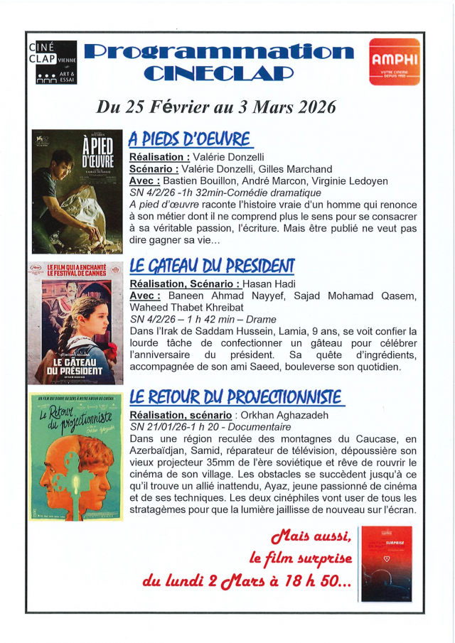 cineclap du 25 fevrier au 3 mars